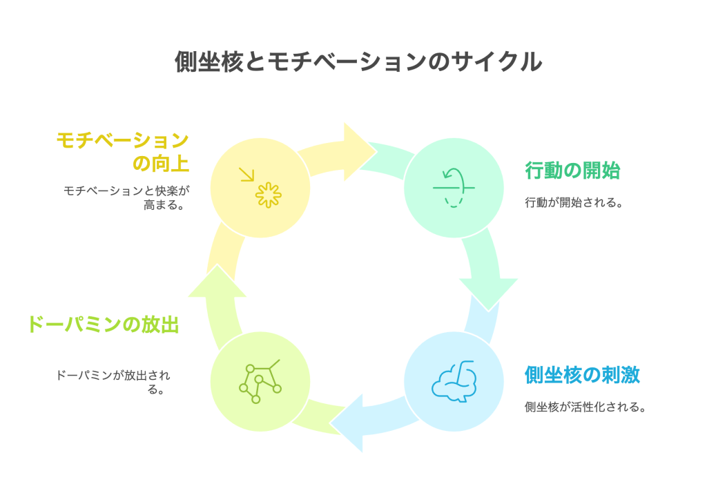 行動を開始すると、脳の「側坐核」が刺激され、モチベーションが高まります。